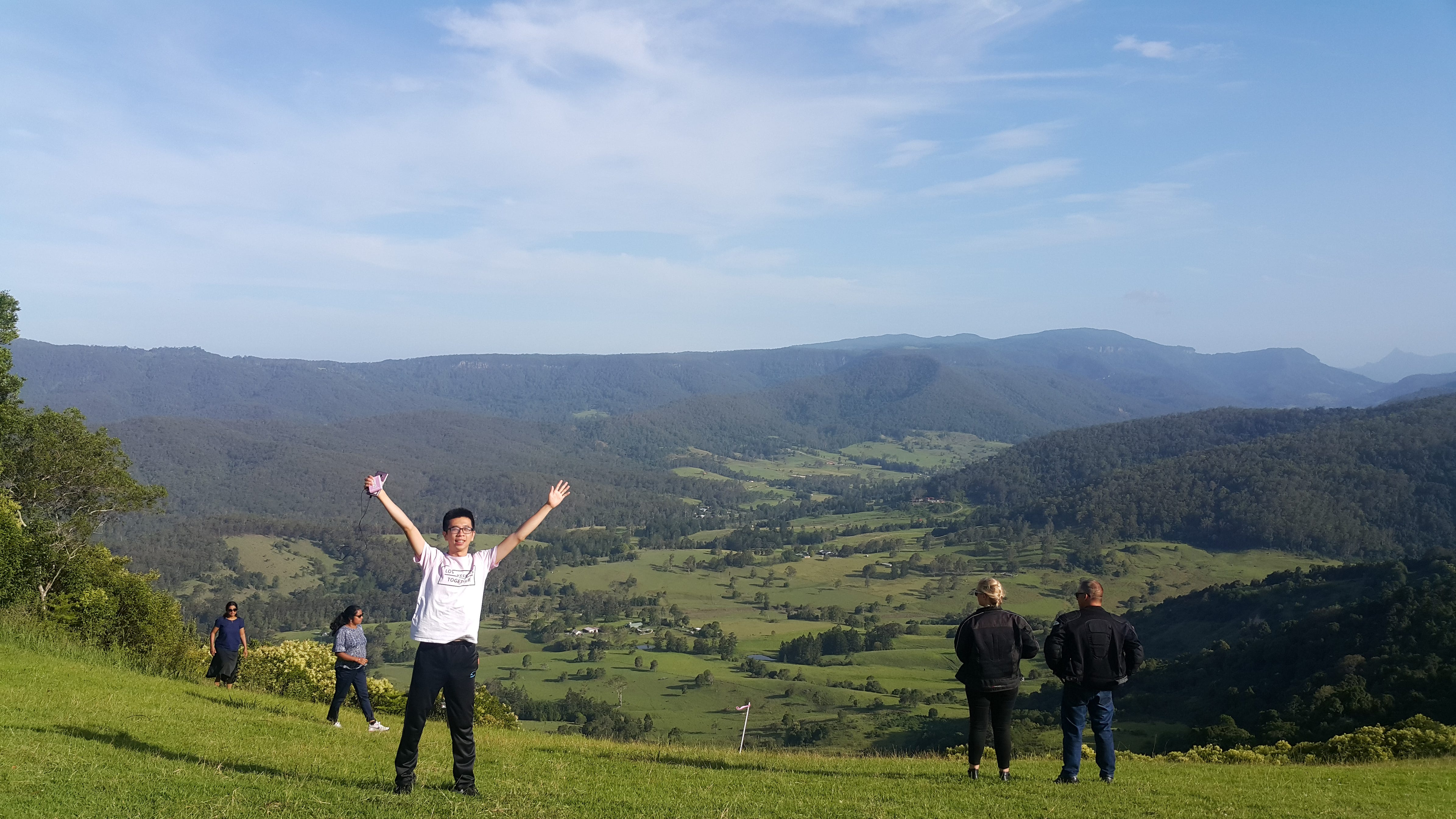 Numinbah lookout是少數適合坐著休息的地方,但是並沒有讓我們失望,從這裡看出去在春溪國家公源和雷明頓國家公園之間的小山谷綠意盎然。而且錯落其中的小房子就像是小時候看的動畫片那樣非常可愛、清晰。